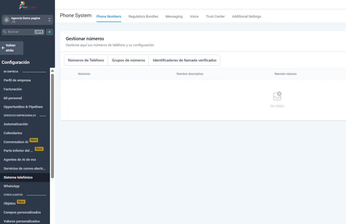 Ve a: Configuración → Teléfonos → A2P 10DLC / Cumplimiento