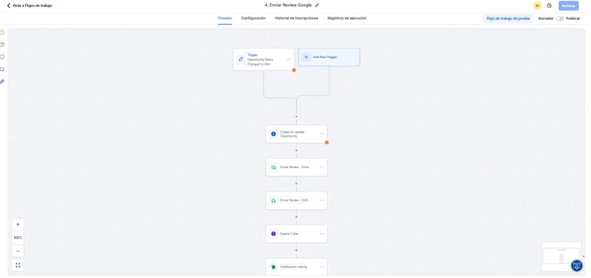 Activa el workflow y el sistema hará todo automáticamente.